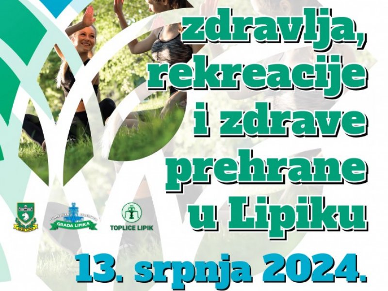 Cjelodnevna manifestacija DAN ZDRAVLJA, REKREACIJE I ZDRAVE PREHRANE se održava u subotu 13. srpnja 2024. godine od 9 sati na mnogim lokacijama, a sastoji se od mnogo mini događanja za posjetitelje Lipika.
